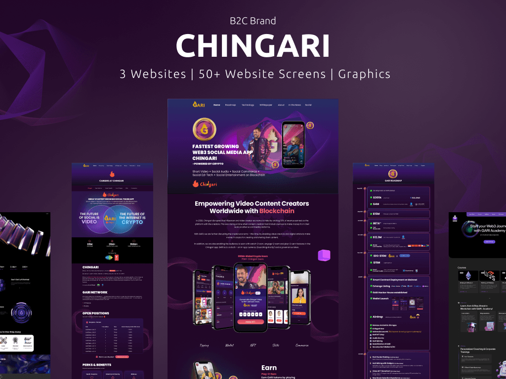 I've crafted four distinct online experiences for Chingari, weaving creativity into every pixel. Two are sleek, single-page wonders, guiding users with seamless scrolls. The other pair stands as full-fledged digital hubs, immersing visitors in the worlds of Gari Network, Chingari Careers, Gari Academy, and Gari Business. Each design is a vibrant fusion of creativity and functionality, bringing Chingari's vision to life online.